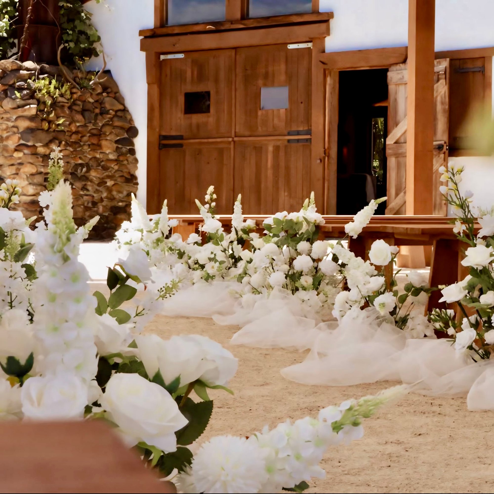 β Upgrade to Full-Service Setup available ~ Includes ceremony setup (2x flower horns with co-ordinated aisle flower arrangements), reception setup (guest tables and sweetheart table), as well as flowers for your welcome area. Please inquire prior to purchase, as extra fees may apply depending on request.
