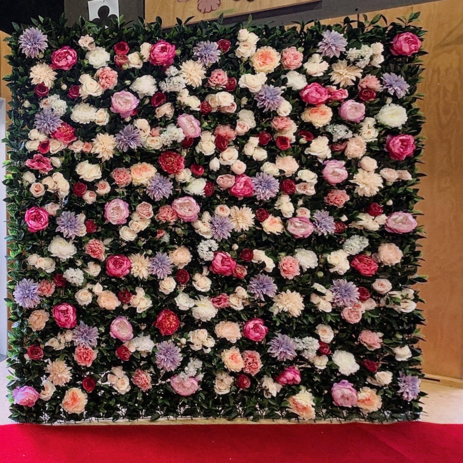 Hire the perfect feature wall backdrop for your event with flowers fully customisable in various colourways. Base size is 2.4m wide x 2.4m high, and can be extended up to 4.8m wide x 2.4m high.